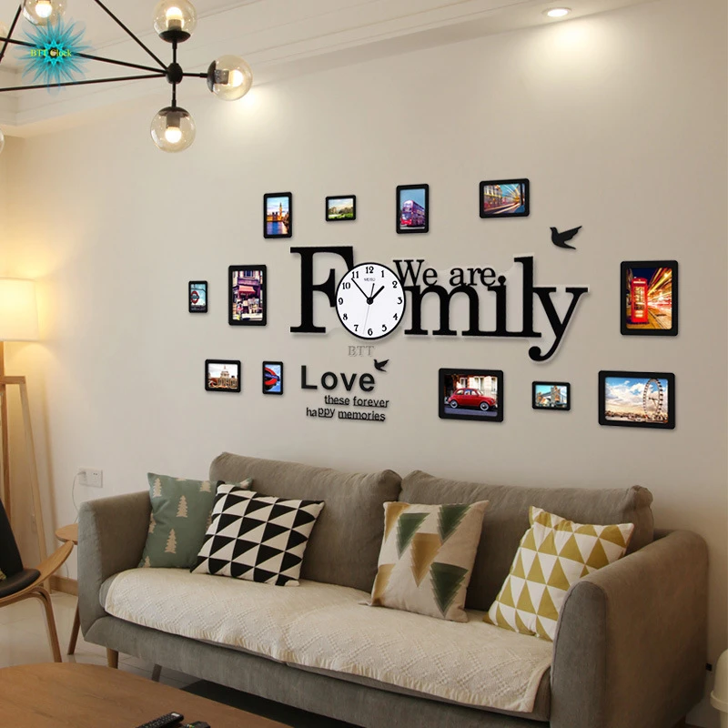 Buy Multi Time Zone Wall Clock City State Country Sign Family Multiple Time Zone World Time Clock Office Clock Family Time Zone Clock Wall Art Decor Wooden Big Clock Online In Hungary B08bp9z3j3 from images-na.ssl-images-amazon.com I would put a larger plant in the corner, move the peace lily to the other end, replace the console with a larger one, hang picture ledges above. Mix pictures and art for an eclectic look. Rated 5 out of 5 stars. Although it's a project that could lend itself to a diy weekend, you can get a polished look with the help of an interior designer or a professional. Is the ceiling height 8 feet or 15 feet? The frames are built from wood and finished in a dark brown stain. The first thing to consider is the location where you will put the family pictures. If you have a lot of amazing collections of family pictures, choose the largest wall in the living room to display them.